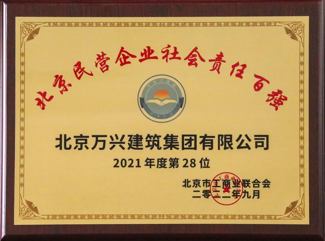 近日,北京市工商業(yè)聯(lián)合會(huì)聯(lián)合有關(guān)部門(mén)發(fā)布了北京民營(yíng)企業(yè)“1+4”百?gòu)?qiáng)榜單。北京萬(wàn)興建筑集團(tuán)憑借在綜合實(shí)力、科技創(chuàng)新、社會(huì)責(zé)任等領(lǐng)域的優(yōu)秀表現(xiàn),榮登“北京民營(yíng)企業(yè)百?gòu)?qiáng)”主榜單以及“北京民營(yíng)企業(yè)社會(huì)責(zé)任百?gòu)?qiáng)”榜單。