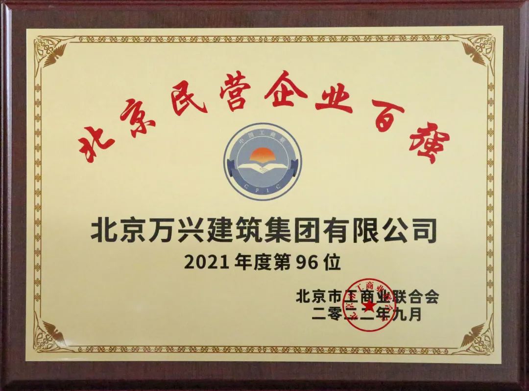 北京萬(wàn)興集團(tuán)連續(xù)五年榮登北京民營(yíng)企業(yè)百?gòu)?qiáng)榜單