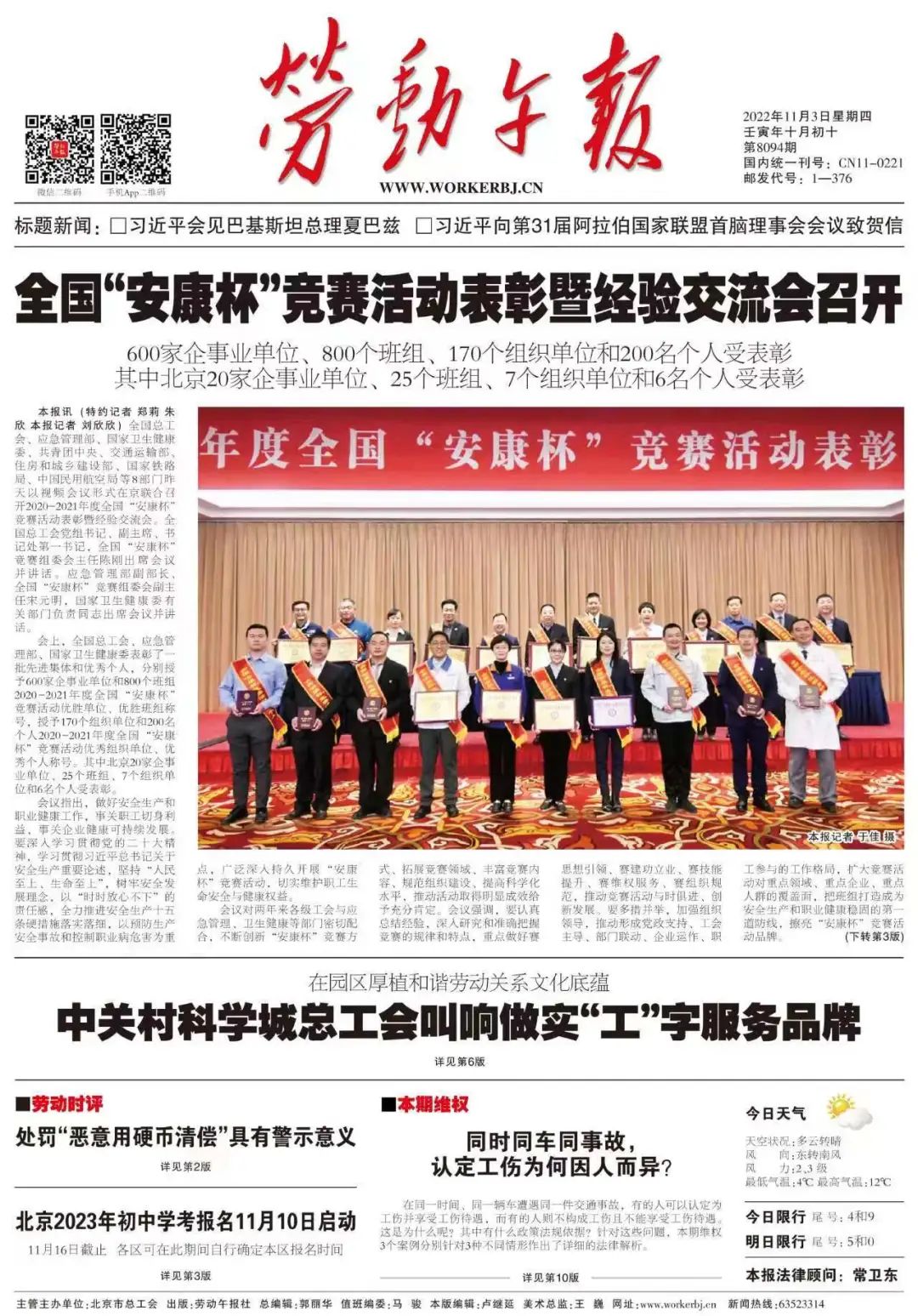 2022年是全國“安康杯”競賽活動表彰之年。11月2日上午,全國總工會、應急管理部、國家衛生健康委、共青團中央、交通運輸部、住房和城鄉建設部、國家鐵路局、中國民用航空局等8部門以視頻會議形式在京聯合召開2020-2021年度全國“安康杯”競賽活動表彰暨經驗交流會,表彰了一批先進集體和優秀個人,分別授予600家企事業單位和800個班組2020-2021年度全國“安康杯”競賽活動優勝單位、優勝班組稱號,授予170個組織單位和200名個人2020-2021年度全國“安康杯”競賽活動優秀組織單位、優秀個人等榮譽稱號。