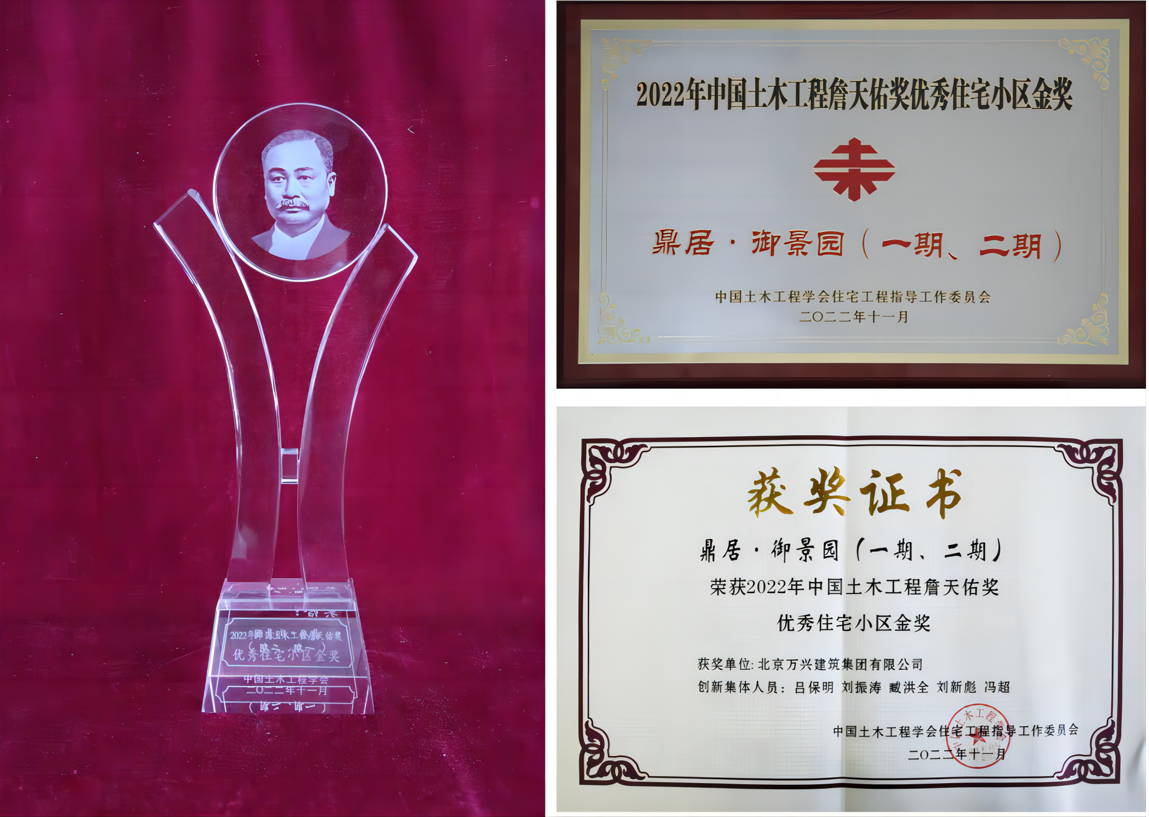 2023年3月10日,中國土木工程協會2022年度中國土木工程詹天佑獎優秀住宅小區“數字賦能、低碳建造”論壇暨金獎頒獎會在青島隆重舉行。本次頒獎會共有38個項目入圍詹天佑獎優秀住宅小區金獎,其中,由萬興集團承建的鼎居·御景園(一期、二期)項目榮獲2022年度中國土木工程詹天佑獎優秀住宅小區金獎。項目經理代表集團參會并上臺領獎。