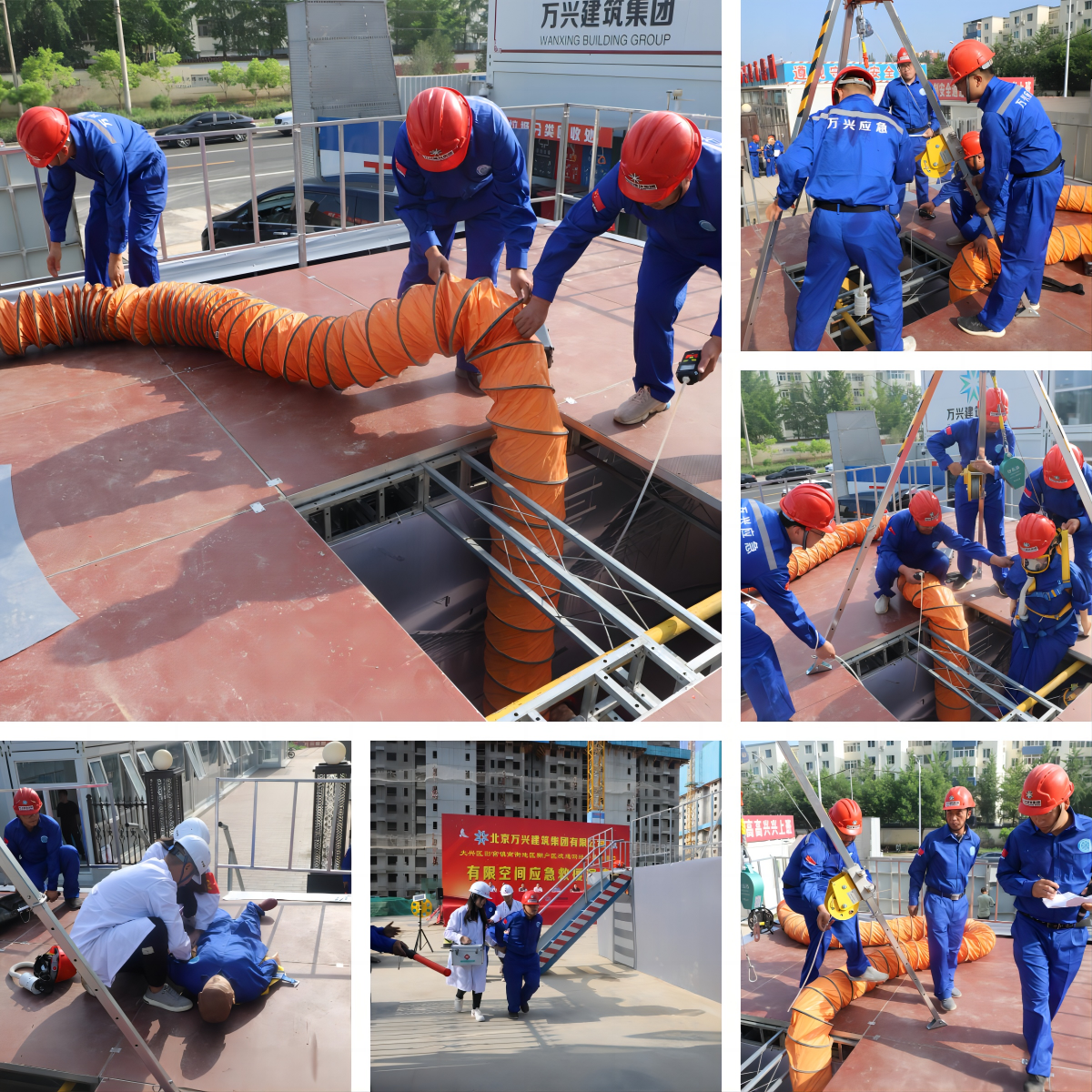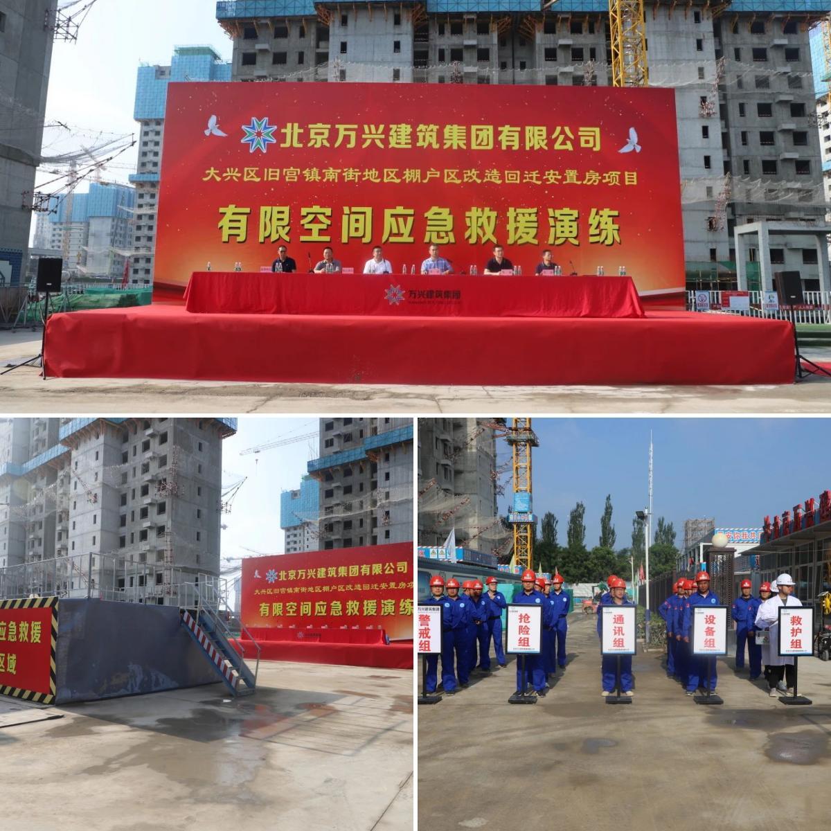 【概要描述】7月23日,萬興集團承建的大興區舊宮鎮南街地區棚戶區改造回遷安置房項目組織開展了有限空間應急救援演練活動,憑借扎實的知識、過硬的應急救援能力,通過了“應急演練示范項目”評審。市建委評審專家、建設單位、監理單位等單位相關負責人,以及萬興集團公司副總經理、項目經理呂寶山,集團副總經理羅高揚,集團安全部、項目部應急演練相關人員等50余人參加了此次活動。