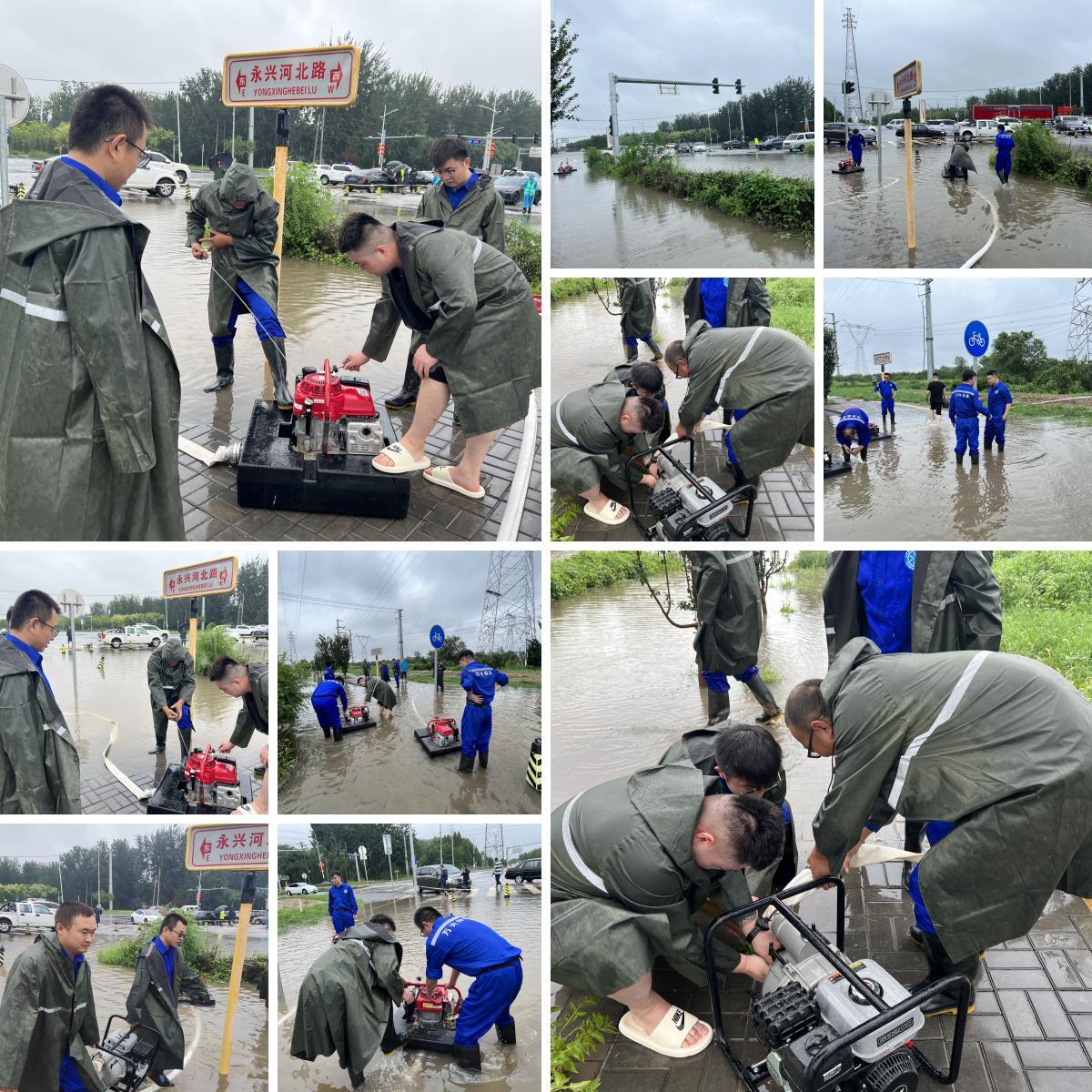 7月30日下午,大興機(jī)場(chǎng)地區(qū)永興河北路道路出現(xiàn)嚴(yán)重積水情況,接報(bào)后,萬(wàn)興應(yīng)急搶險(xiǎn)隊(duì)立即出動(dòng),現(xiàn)場(chǎng)出勤30人次4臺(tái)泵組,開(kāi)展緊急抽水排水作業(yè)。