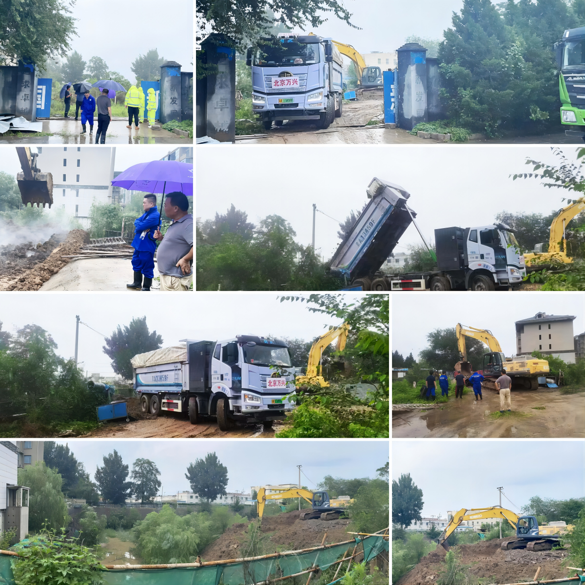 8月1日,受臺風“杜蘇芮”影響,北京市出現連續強降雨,致使大興區果嶺假日小區“深10米基坑被暴雨沖出一道裂縫,將雨水灌進了小區7號樓地下室”,為避免樓體沉降以及小區36戶居民受災,萬興集團聞“險”而動,火速派出應急搶險隊,冒雨趕往受災現場。