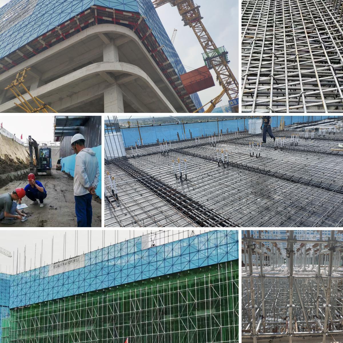 在集團領導的帶領下,項目從4月30日沖出正負零,到今天實現主體封頂這一里程碑節點,項目部人員始終堅持安全質量“兩手抓,兩不誤”,集團副總經理、十三分公司經理劉景旭扎根現場、積極協調、精心組織、周密部署,全體參建人員充分發揚不怕苦、不怕累精神,接連克服高溫、多雨等不利氣候條件,以及麥收時節現場結構分包勞動力嚴重流失等不利因素影響,歷經99天完成了地上36582㎡主體結構施工。