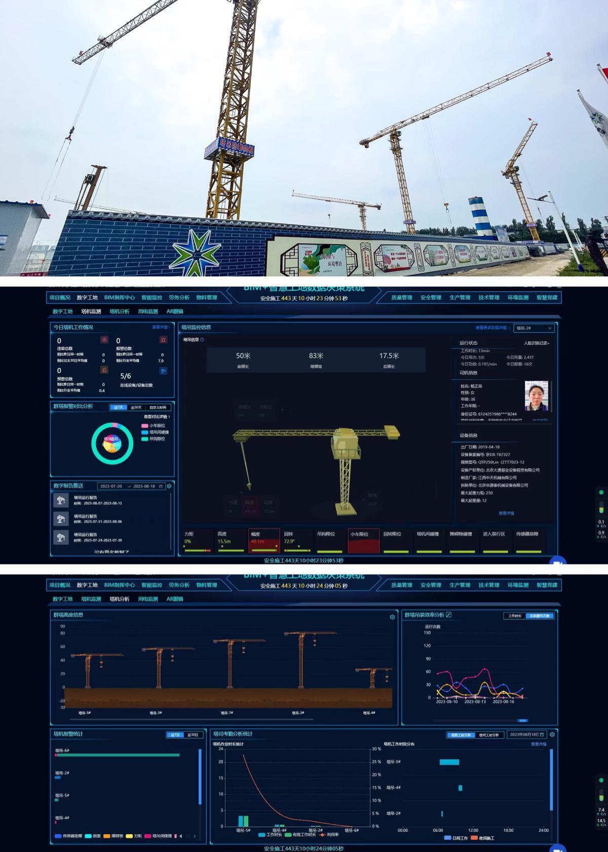 項目裝備塔吊的塔基監(jiān)測系統(tǒng),對五限位、群塔防碰撞及時預警,引入吊鉤可視化設(shè)備,極大提高了塔吊作業(yè)安全和工作效率。