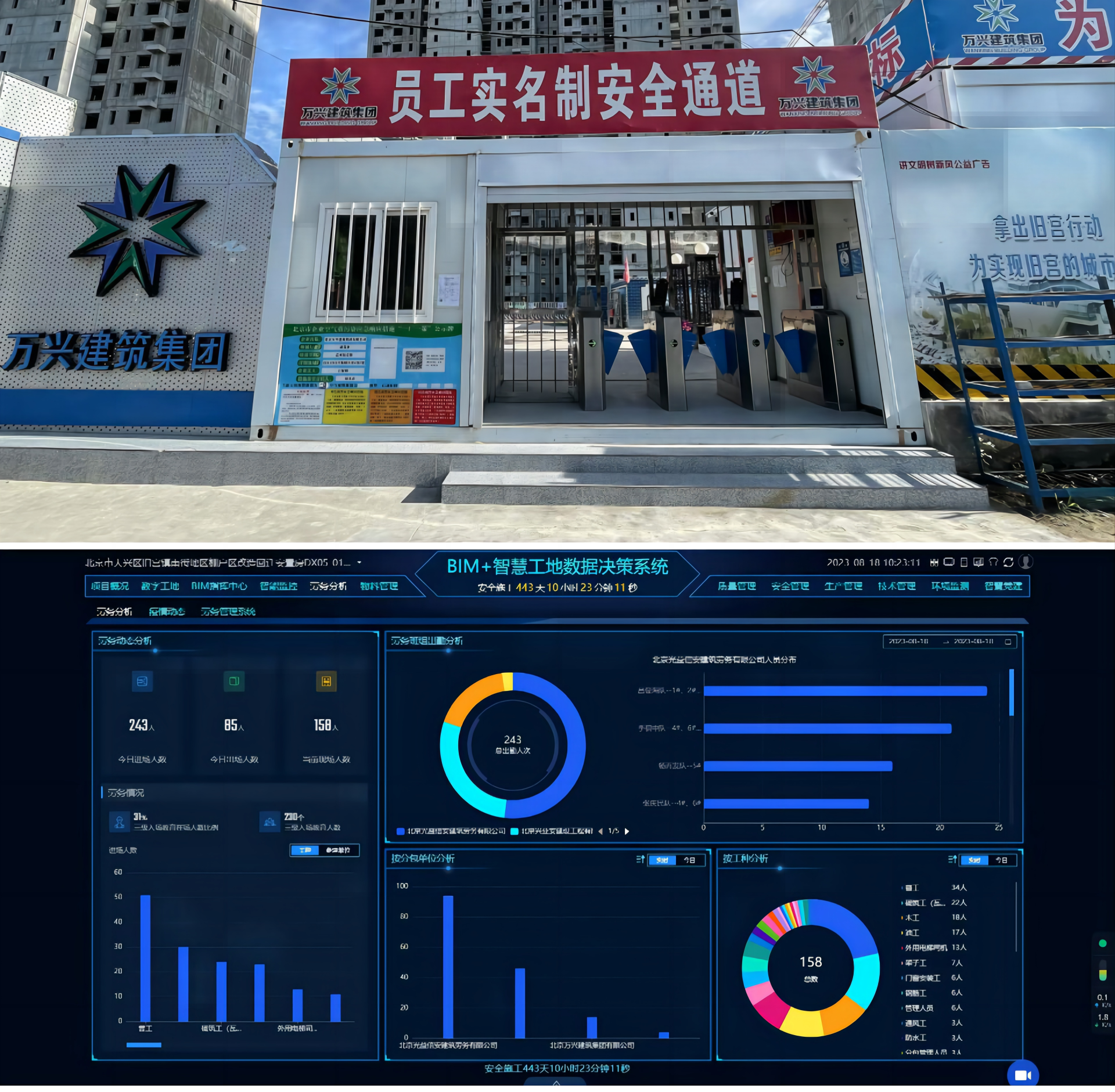 項目采用“閘機+人臉識別+投屏寶”方式進行人員出入管控,實時動態(tài)管控監(jiān)控,對勞務(wù)人員實現(xiàn)了高效快捷的管控。
